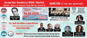 Avrupa’dan Anadolu’ya Kültür Köprüsü kültür, sanat, anma ve müzik şölenlerine davetlisiniz