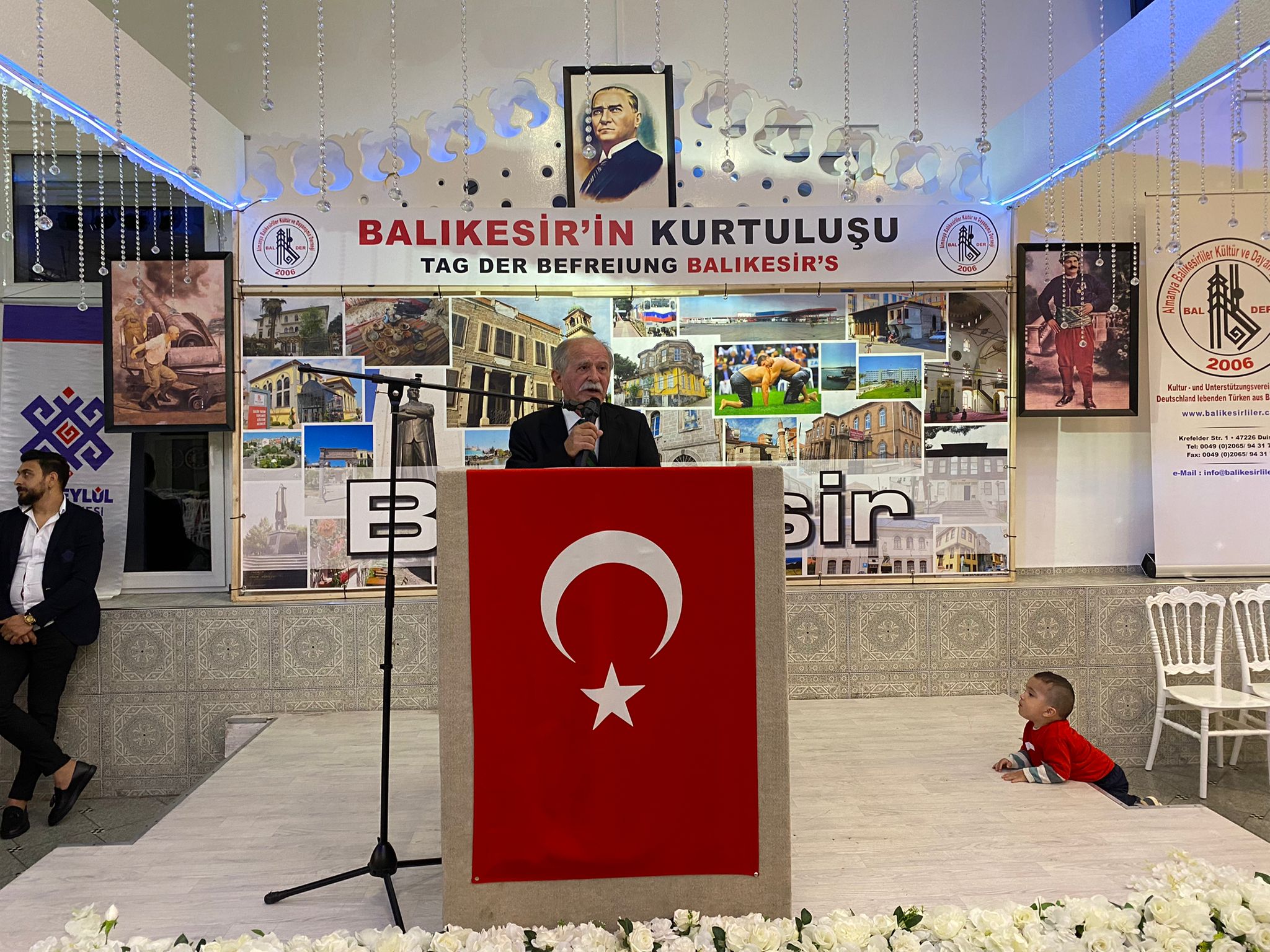 DUISBURG- BALDER tarafından 16.kez düzenlenen “Balıkesir’in düşman işgalinden kurtuluşunun 100’üncü yılı kutlama programı”na Balıkesir’den Altıeylül Belediye Başkan Yardımcısı Feyyaz Çiftçi, yazar ve şair Yusuf Akgül, sanatçı Erhan Cansever, T.C. Essen Başkonsolosluğu’ndan Muavin Konsolos Mustafa Aldı, Oberhausen Türk Birliği Başkanı Metin Aziz Şenocak, Umut Yolu Derneği Başkanı Aynur Çelikdöven, Duisburg Alevi Toplumu Kadın Kolları Başkanı Leyla Kıplak, Rheinhausen Ülkü Ocağı Başkanı Ferhat Yüksel, DİTİB Eyüp Sultan Camii Başkanı İbrahim Demirhan, Duisburg Atatürkçü Düşünce Derneğinin temsilcileri ile çok sayıda vatandaş katıldı.