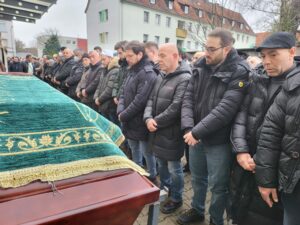 27 yaşında vefat eden Zonguldak Devrekli Dilara Mirvan Tabakoğlu, Cuma namazına müteakip kılınan cenaze namazının ardından Brambauer’daki Müslüman Mezarlığında bebeğinin yanına defnedildi.