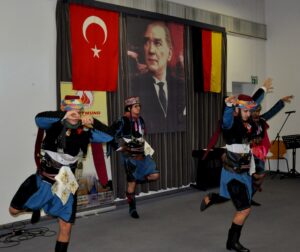DOTEM’i tanıtan sinevizyon gösterisi, DOTEM’e uzun yıllardır katkılarını esirgemeyen Zafer Marketleri kurucusu Sevim Çıplak’a Başkonsolos Şimşir tarafından plaket takdimi, müzik dinletileri ve DOTEM Serhatlar Zeybek ekibinin Zeybek gösterisi ile devam eden program günün anısına çekilen hatıra fotoğrafı ile sona erdi.