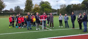 Michael Thews ile Jürgen Kleine-Frauns’a takımın kaşkolü hediye edilirken açılış münasebetiyle BV Brambauer 13/45 genç takımları kendi arasında dostluk maçı oynadı.
