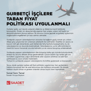 Saadet Avrupa Başkanı Samet Sami Temel, artan uçak bilet fiyatları ile ilgili Almanya’dan Haberler’e bir açıklama yaptı.