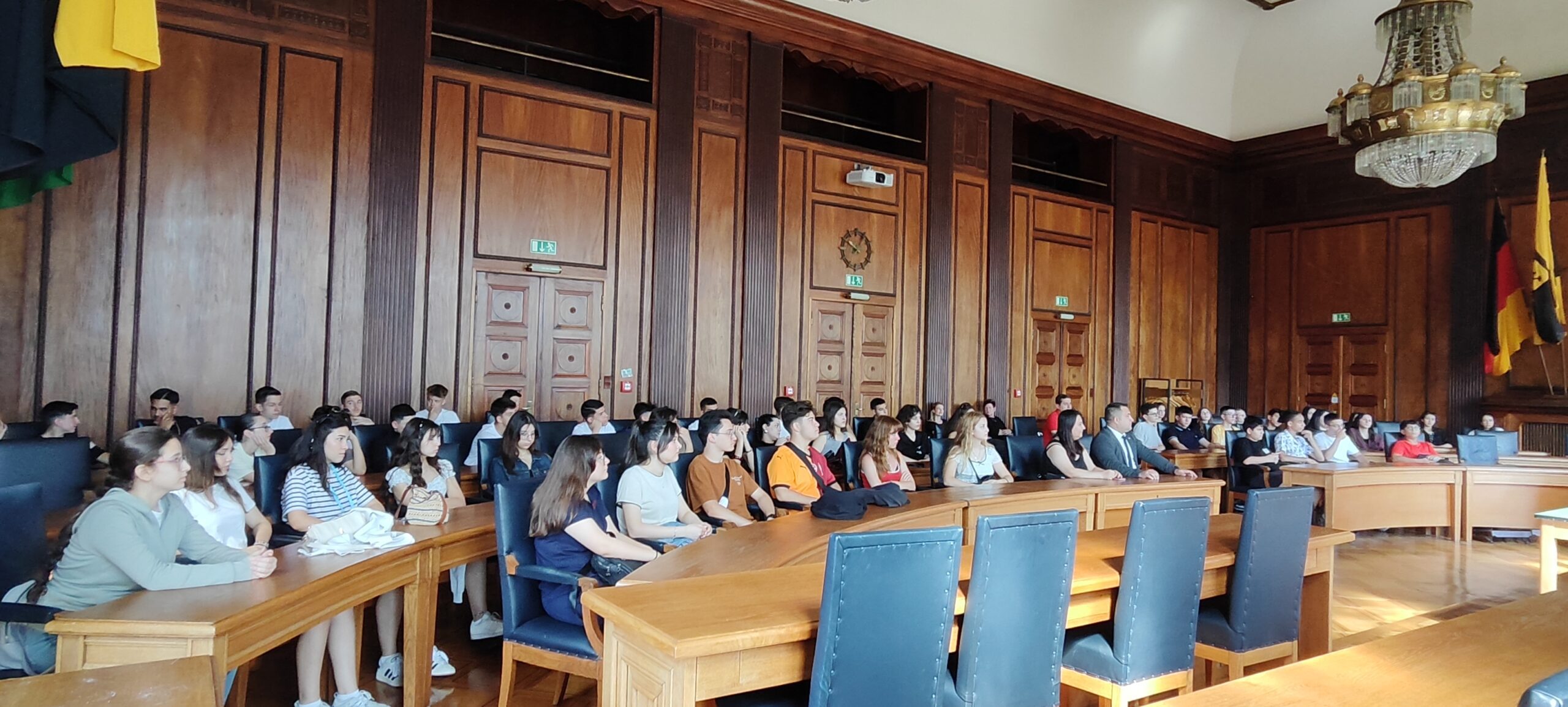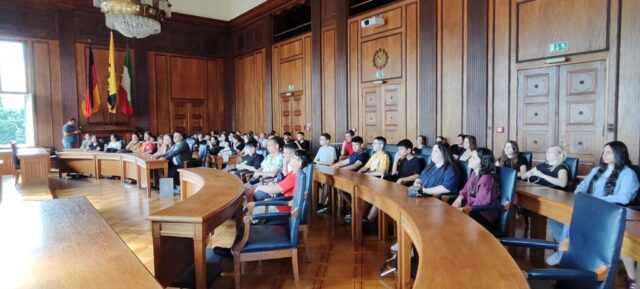 Toplam 40 öğrenci ve 3 öğretmenden oluşan heyet, kültürel değişim programı kapsamında gerçekleştirdikleri Almanya ziyaretinde, Herne Belediyesi’nde ağırlandı. Heyeti, Belediye Meclis Salonu’nda Herne Büyükşehir Belediyesi Başkan Yardımcısı Kai Gera karşıladı.