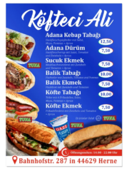Bahnhofstraße 287, 44629 Herne adresinde açılan Köfteci Ali, damak tadı ve helal menüleri ile Herne’nin yeni lezzeti oldu.