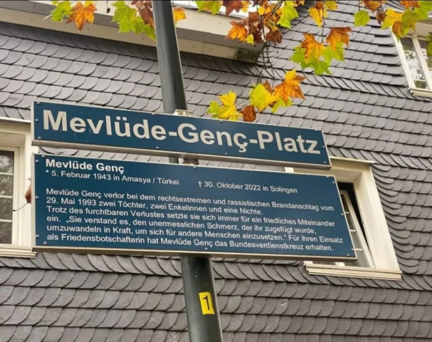 Almanya’nın Solingen kentinde 29 Mayıs 1993’te ırkçılar tarafından kundaklanan evlerinde çıkan yangında ailesinin 5 ferdini yitiren ve ardından yaptığı sağduyulu açıklamaları ile barışın ve sağduyunun örneği olan Mevlüde Genç, vefatının ikinci senesinde Solingen’de düzenlenen bir törenle anıldı.