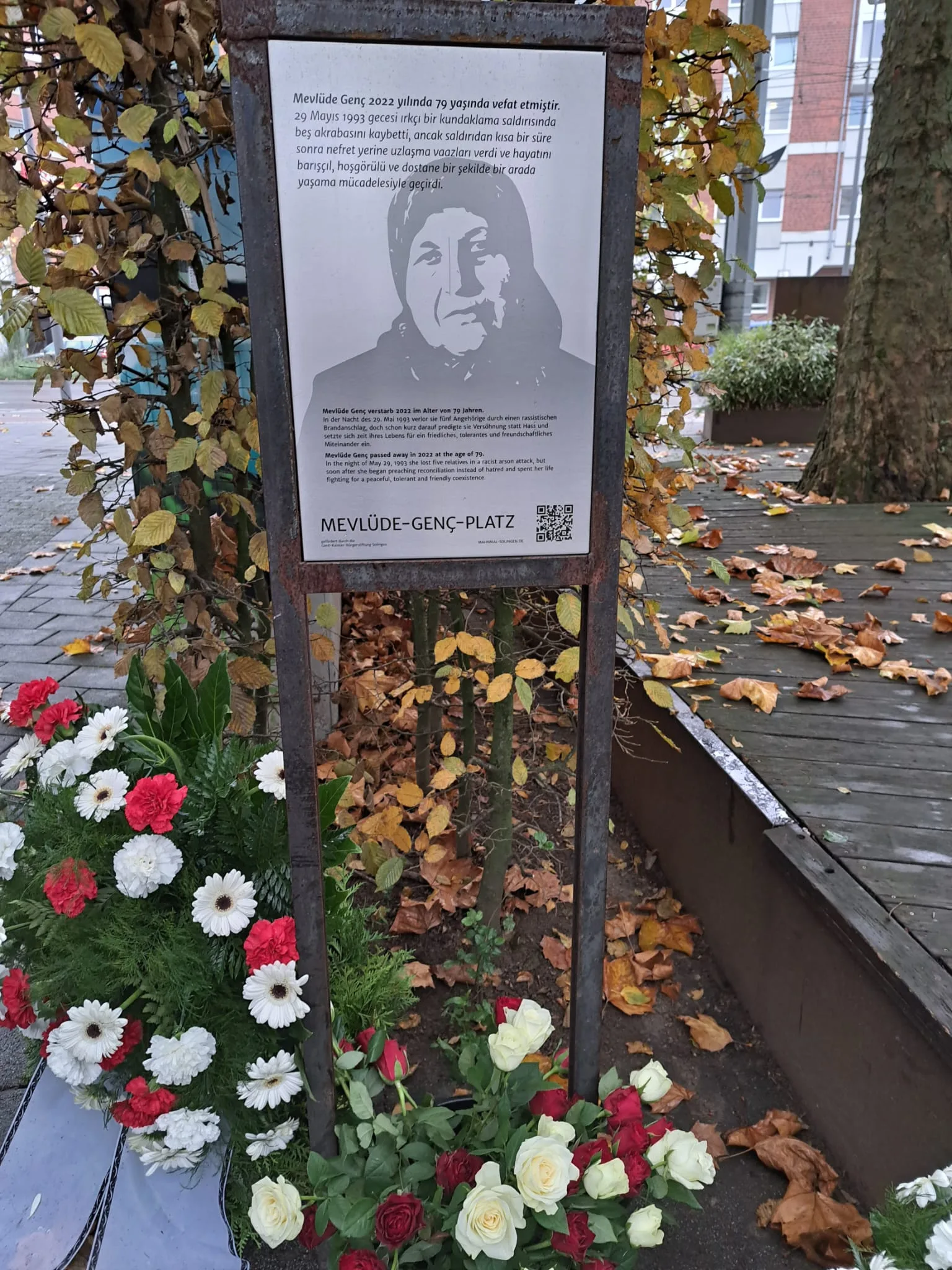 “Sevgi yaşatır, nefret öldürür.” Mesajıyla birlik ve beraberlik mesajı veren için Mevlüde Genç için Mevlüde Genç Meydanında Alternative Bürgerinitiative Solingen tarafında bir anma töreni düzenledi.