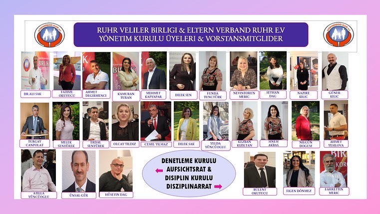 23.9.2022 tarihinde olağan genel kurulunu yapan Ruhr Veliler Birliğinde, yönetim, denetleme ve disiplin kurulları yeniden belirlendi. Tam 14 yıldır Ruhr havzasında veli eğitimi başta olmak üzere, kültürel ve özellikle de günümüzde çokdilliliğin ve anadili konularında önemli çalışmaların öncüsü olan Ruhr Veliler Birliği’nin yeni tüzüğüne göre eşbaşkanlık sistemi yürürlüğe girdi. Eşbaşkanlığa, derneğin kuruluşundan bu tarafa başkanlığı yürüten Dr. Ali Sak ile derneğin tüm aşamalarından geçen, kendisini dernek yönetimi konusunda geliştiren iki çocuk annesi Fatime Okuyucu seçildi. 22 üyeden oluşan yeni yöretim kurulunda görev dağılımı şu şekilde yapıldı: