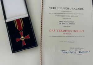 Almanya Cumhurbaşkanı Frank Walter Steinmeier, Bellevue Sarayı’nda düzenlenen törende Prof. Dr. Yüksel Ekinci’ye Federal Liyakat Nişanı takdim etti.
