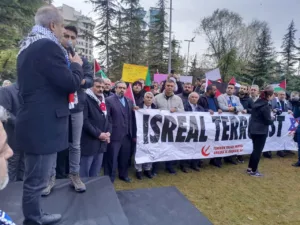 Yeniden Refah Partisi Ankara İl Başkanı Mustafa Yanılmaz, burada yaptığı konuşmada, İsrail’in Gazze’deki vahşetine son verilmesi gerektiğini vurguladı, bu vahşetin herhangi bir gerekçeyle meşrulaştırılamayacağını belirtti. Yanılmaz hükümete de seslendi ve Kürecik ve İncirlik üslerinin kapatılması, İsrail’le hali hazırda süren ticaretlerin de durdurulması veya azaltılması çağrısı yaptı.